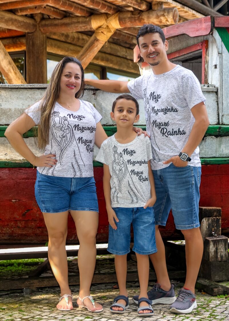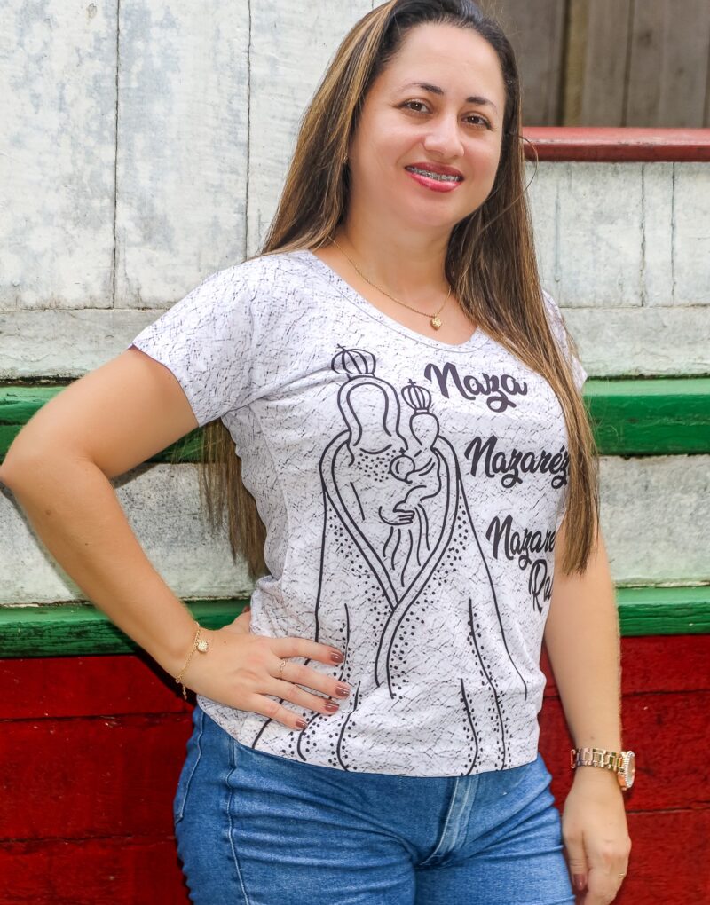 Camisa Nazaré Menina: Conforto e qualidade, feita com tecido suave e resistente, essa camisa é perfeita para acompanhar a família na maior procissão católica, o Círio de Nazaré. A estampa vibrante e delicada é durável e não desbota. Sem identificação de ano, essa camisa é uma peça atemporal para ser usada em qualquer ocasião. Detalhes: